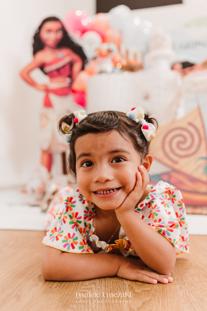 A fotografia de aniversário infantil em Mogi das Cruzes sempre me presenteia com momentos inesquecíveis, e acompanhar o crescimento da Catarina é um privilégio que mora no meu coração. Ela completou 3 anos em uma festa linda com tema Moana, decorada com todo carinho pela Luma, da Viva Tem Festa no ar, nobuffet Pé de Caqui, e cada detalhe parecia ter saído diretamente do oceano encantado da Disney.
